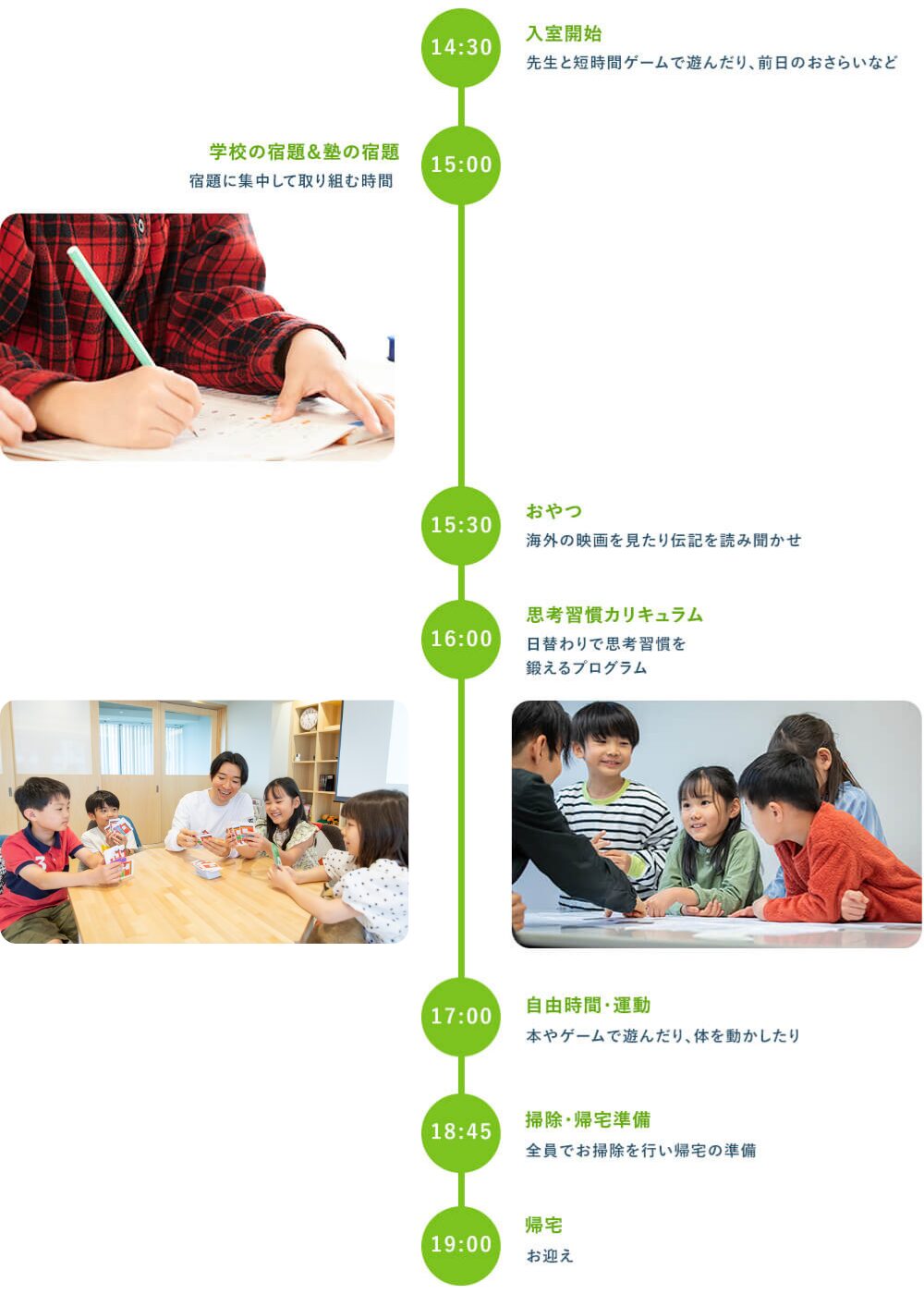 - 毎日1時間、1回のクレイバーキッズ独自の思考習慣カリキュラム