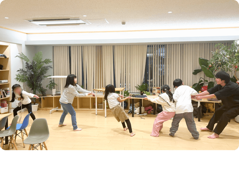 ボードゲームや知育遊び、体を動かす遊びなど、スタッフ・お友達と一緒に楽しくすごします。